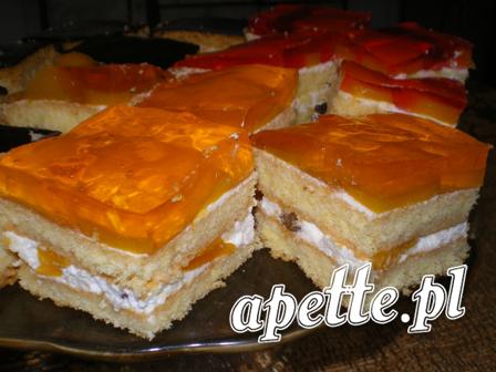 Biszkopt z bitą śmietaną, brzoskwiniami i galaretką