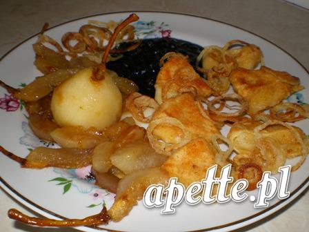 Camembert z prażoną cebulką, karmelizowanymi gruszkami i borówkami